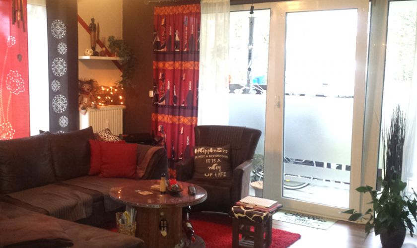 Wohnzimmer erreicht man bequem die Terrasse, der Gartenanteil